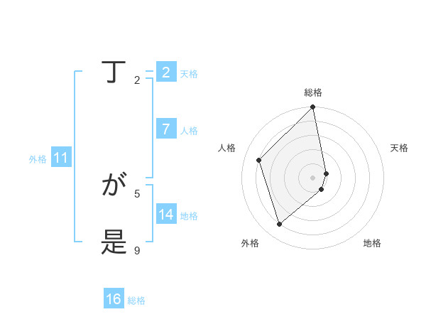丁 が是さんの総格は16画の5点!