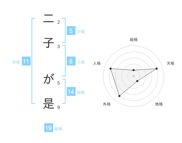 二子 が是さんの外格は11画の4点!