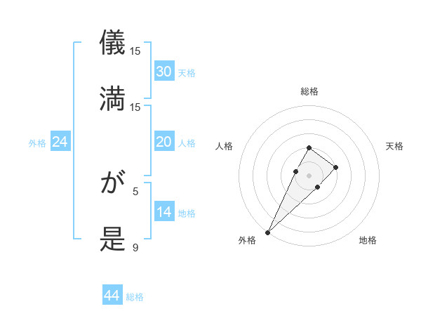 儀満 が是さんの総格は44画の2点!
