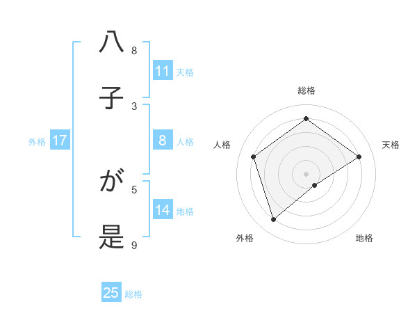 八子 が是さんの総格は25画の4点!