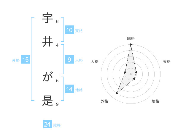 宇井 が是さんの総格は24画の5点!