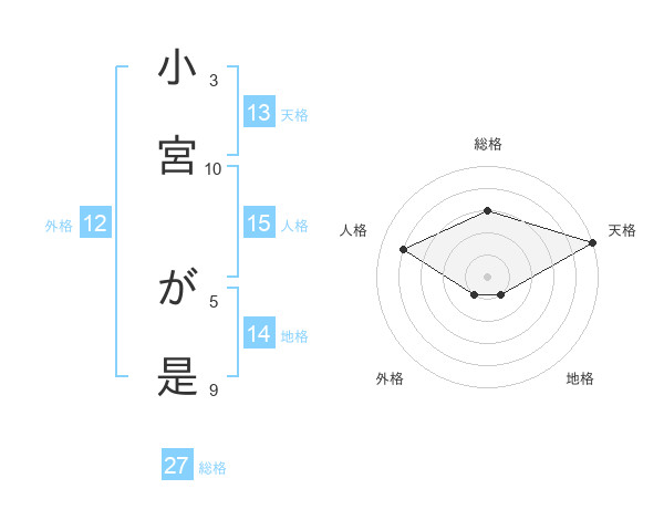 家系が持つ宿命的な運勢を表します。祖先から受け継いだ苗字ですので自分の力が及びません。家柄を象徴します。