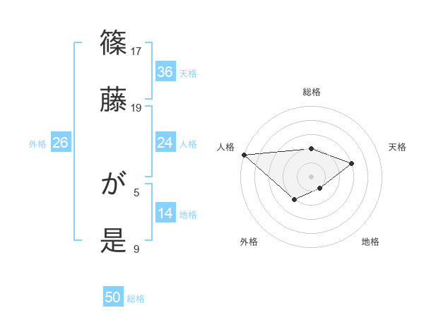 篠藤 が是さんの総格は50画の2点