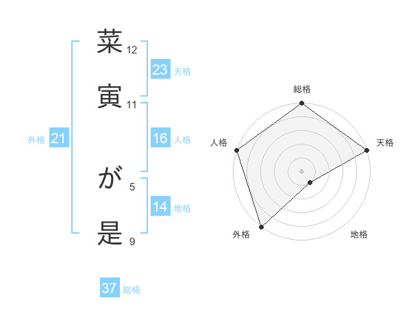 菜寅 が是さんの総格は37画の5点!