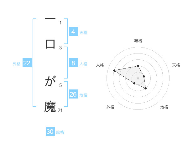 一口 が魔さんの総格は30画の2点!