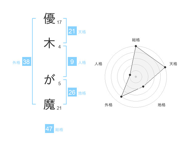 優木 が魔さんの総格は47画の5点!