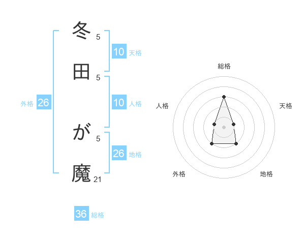 冬田 が魔さんを姓名の画数から五運を鑑定