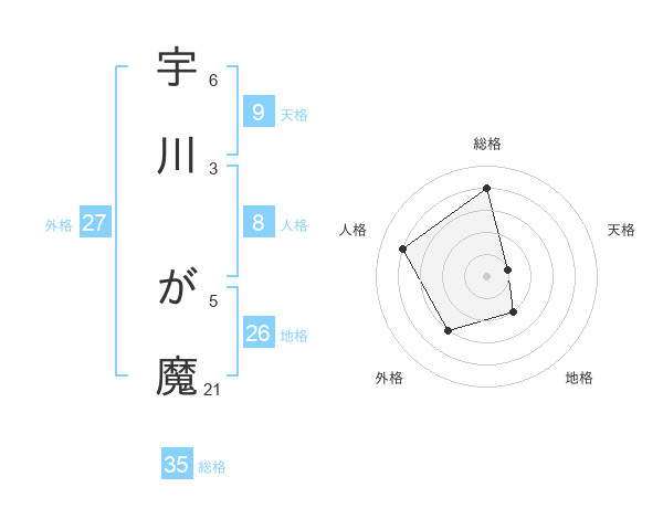 宇川 が魔さんを姓名の画数から五運を鑑定