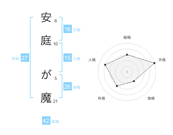 安庭 が魔さんの総格は42画の3点!