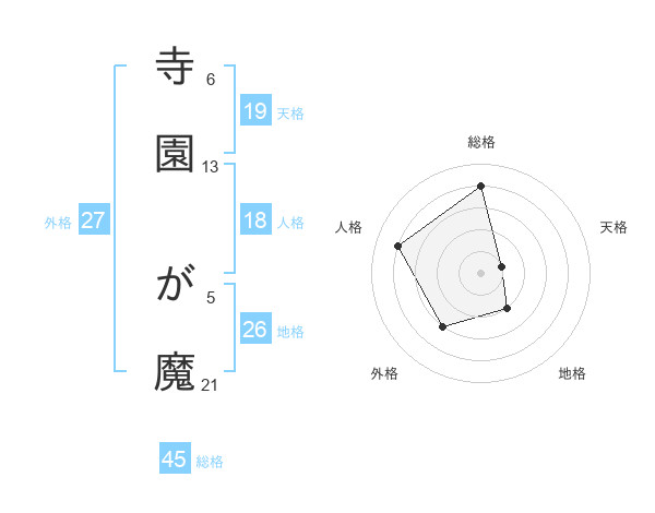寺園 が魔さんの総格は45画の4点!