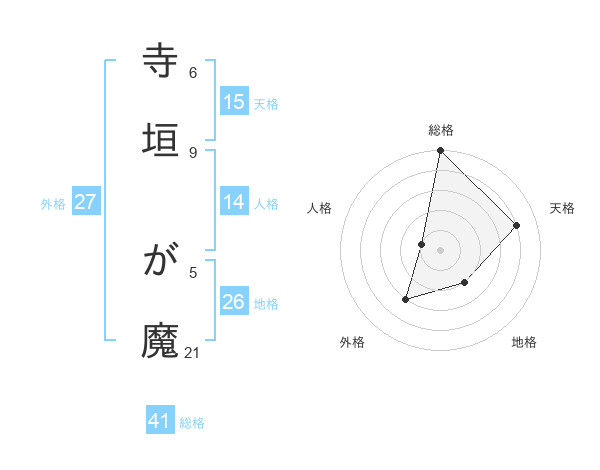 寺垣 が魔さんの総格は41画の5点!