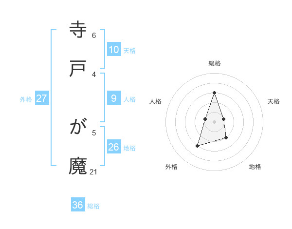 寺戸 が魔さんの天格は10画の1点!