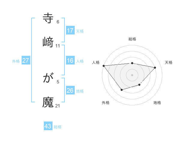 寺﨑 が魔さんを姓名の画数から五運を鑑定