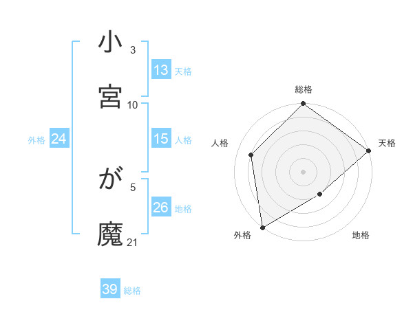 小宮 が魔さんを姓名の画数から五運を鑑定