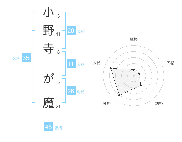 小野寺 が魔さんを姓名の画数から五運を鑑定