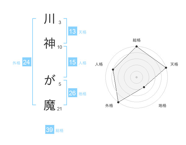 川神 が魔さんの総格は39画の5点!