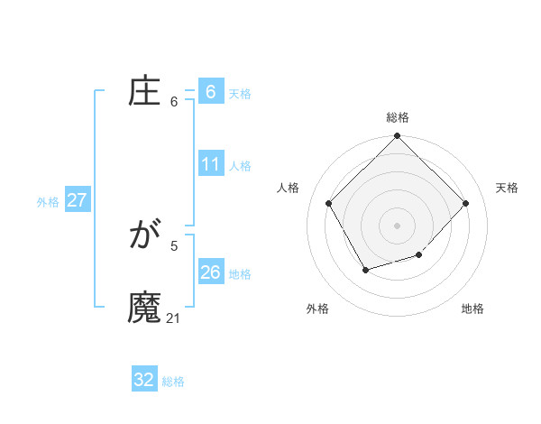 庄 が魔さんの総格は32画の5点!