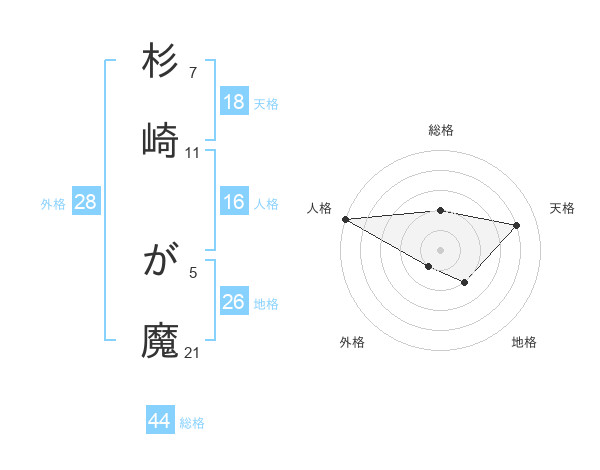 杉崎 が魔さんを姓名の画数から五運を鑑定