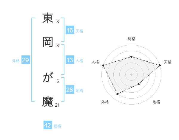 東岡 が魔さんを姓名の画数から五運を鑑定