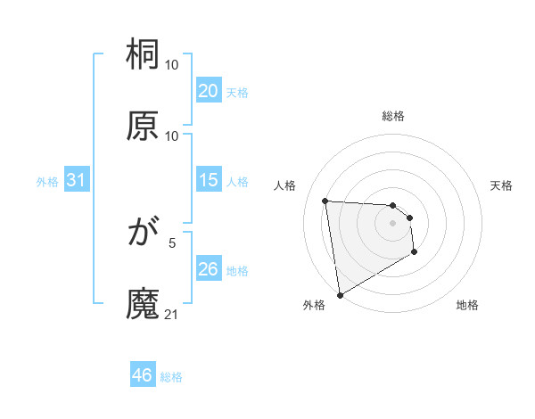 桐原 が魔さんを姓名の画数から五運を鑑定
