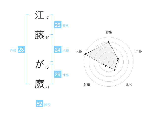 江藤 が魔さんの総格は52画の4点!