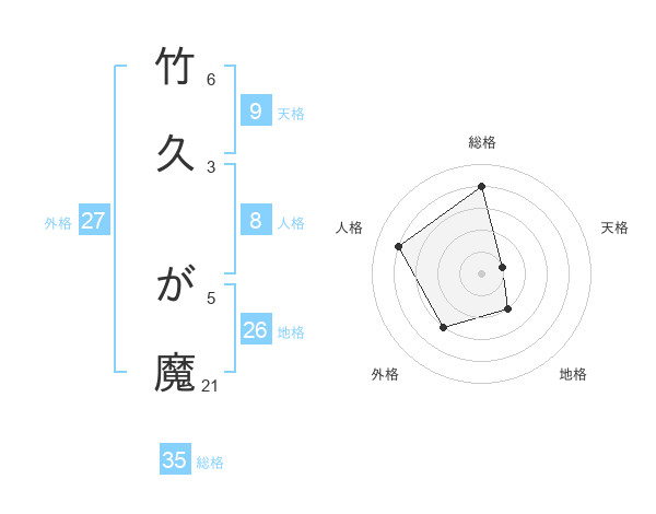 竹久 が魔さんを姓名の画数から五運を鑑定