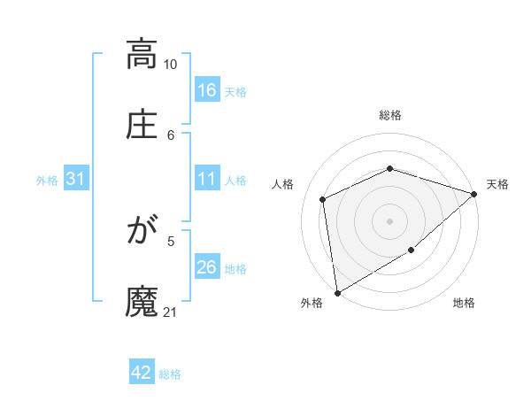 高庄 が魔さんの天格は16画の5点!