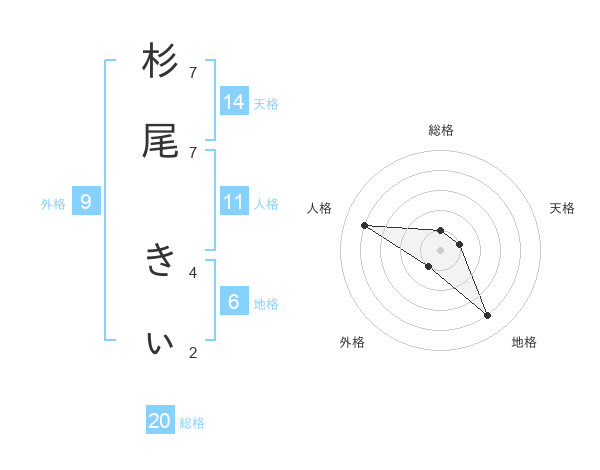 杉尾 きぃさんを姓名の画数から五運を鑑定