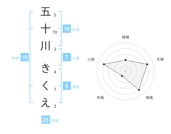 五十川 きくえさんの天格は18画の4点!