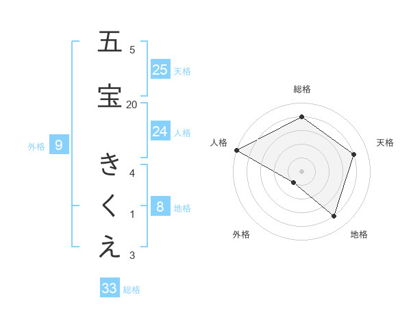 五宝 きくえさんの総格は33画の4点!