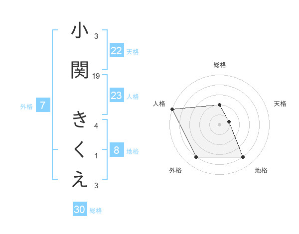 小関 きくえさんの総格は30画の2点!