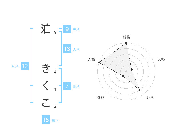 泊 きくこさんの人格は13画の5点!