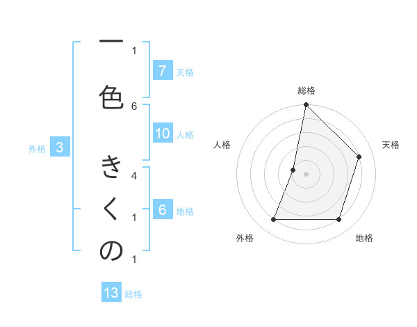 一色 きくのさんの総格は13画の5点!