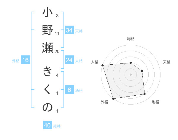 小野瀬 きくのさんを姓名の画数から五運を鑑定