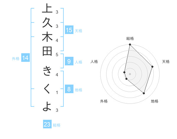 上久木田 きくよさんを姓名の画数から五運を鑑定