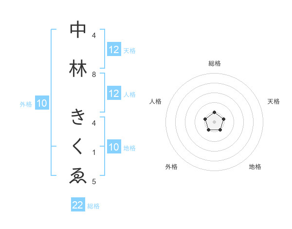 中林 きくゑさんの総格は22画の1点!