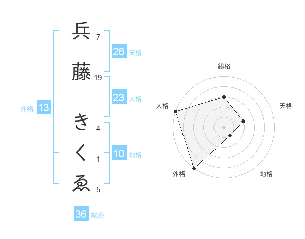 兵藤 きくゑさんを姓名の画数から五運を鑑定