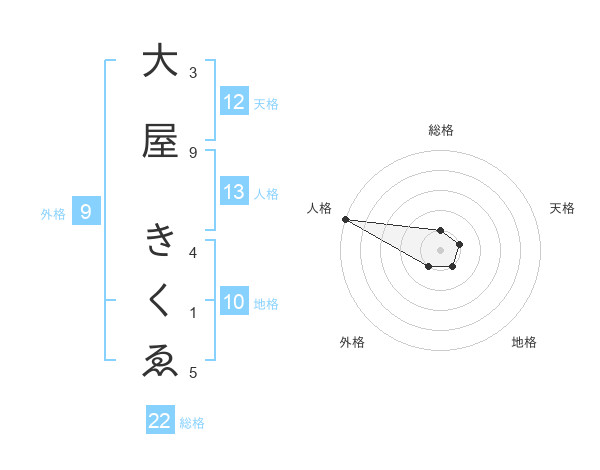 大屋 きくゑさんを姓名の画数から五運を鑑定