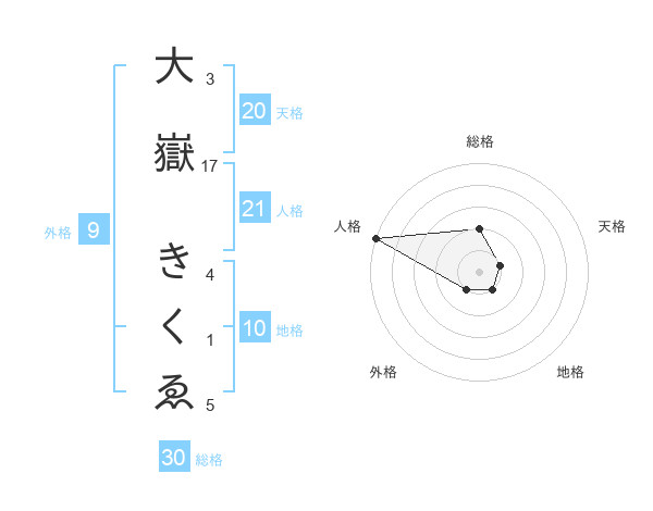 大嶽 きくゑさんを姓名の画数から五運を鑑定