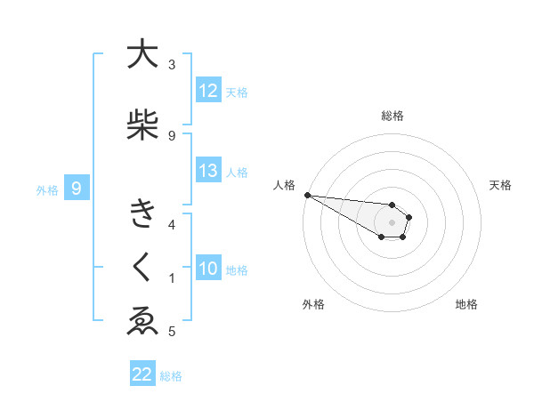 大柴 きくゑさんの総格は22画の1点