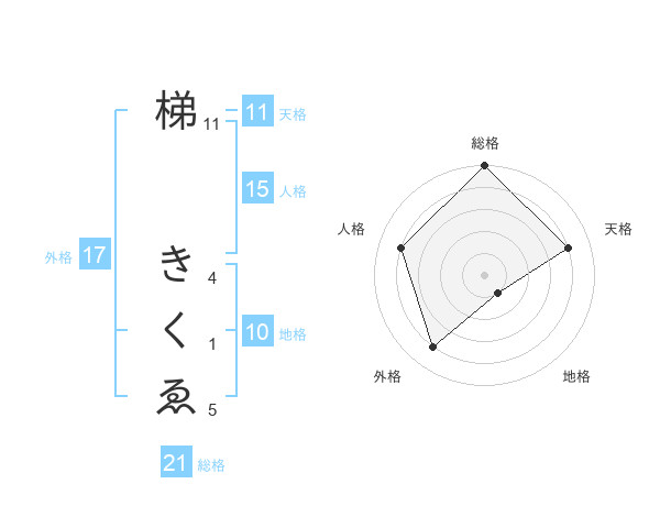 梯 きくゑさんの総格は21画の5点!