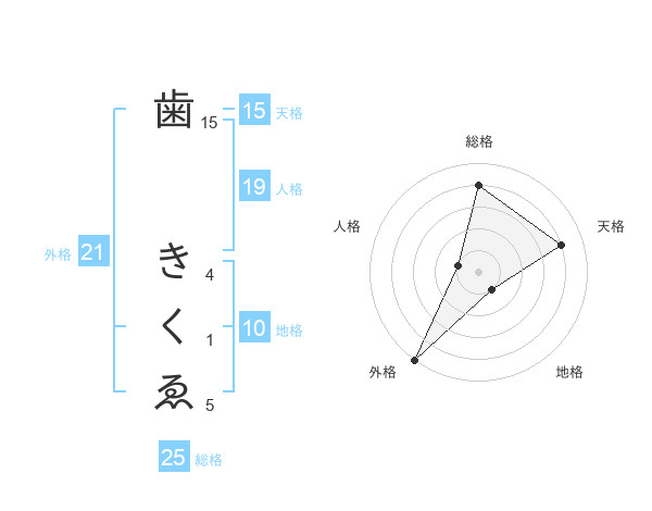 歯 きくゑさんの外格は21画の5点!