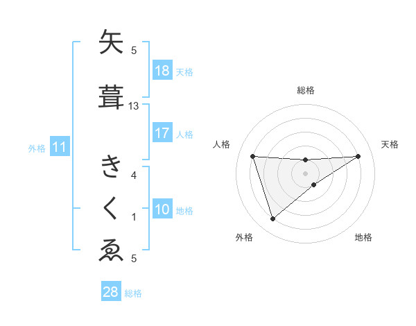 矢葺 きくゑさんを姓名の画数から五運を鑑定