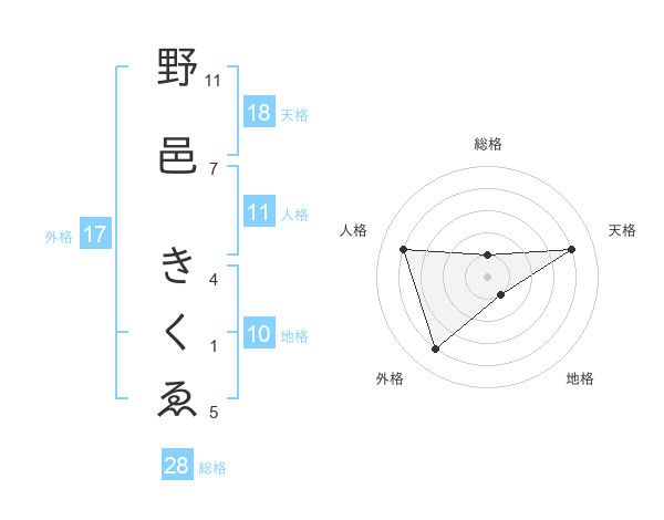 野邑 きくゑさんの総格は28画の1点
