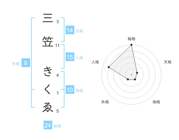 三笠 きくゑさんを姓名の画数から五運を鑑定