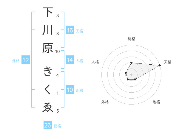 下川原 きくゑさんを姓名の画数から五運を鑑定