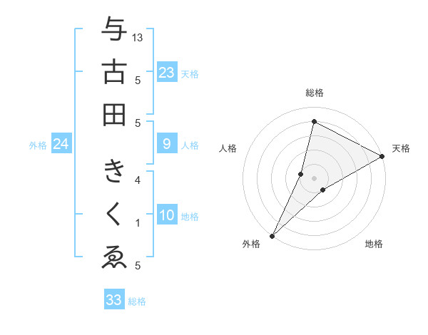 与古田 きくゑさんを姓名の画数から五運を鑑定