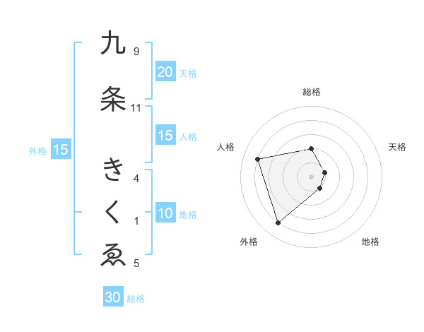 九条 きくゑさんを姓名の画数から五運を鑑定