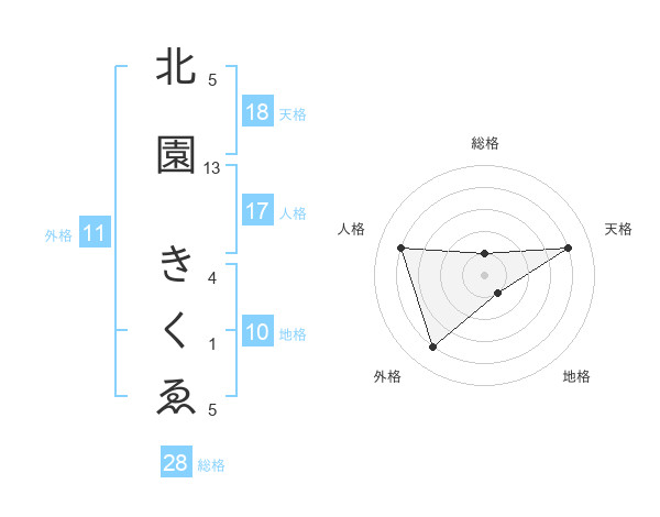 北園 きくゑさんを姓名の画数から五運を鑑定