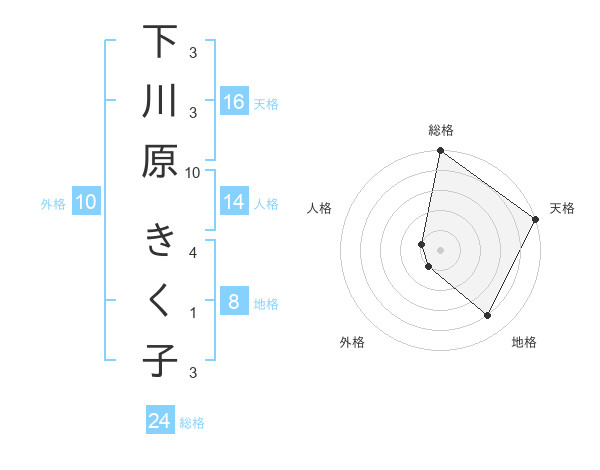 下川原 きく子さんを姓名の画数から五運を鑑定